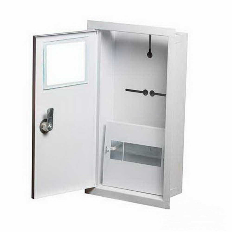 Изготовлен из высококачественного металла, ящик сочетает в себе прочность и современный дизайн. Белый цвет корпуса обеспечивает эстетическую привлекательность и отлично вписывается в любое окружение. Нейтральный и стильный вид щитка подчеркивает внимание к деталям и качеству исполнения. Белая дверца гармонично дополняет общий элегантный вид.