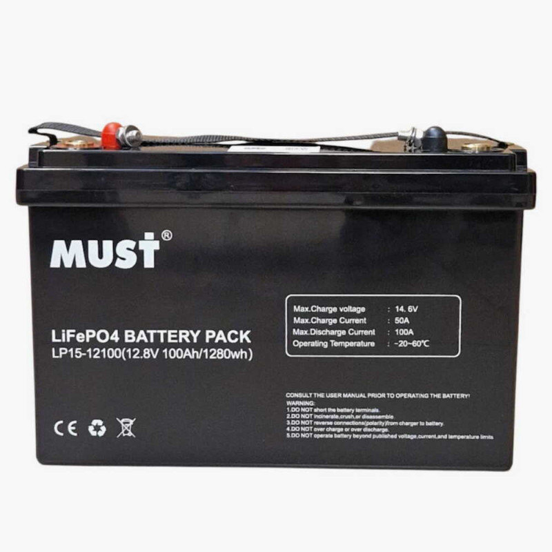 Аккумулятор LiFePO4 12.8V 100Ah BMS 50/100A-1280Wh MUST (LP15-12100)