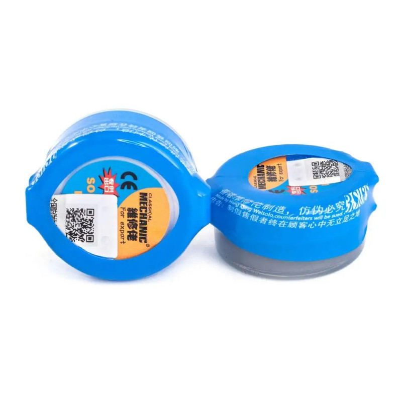 Паяльная паста Mechanic XG-30 предназначена для пайки печатных плат и мелких (SMD) элементов. Является смесью очень мелких частиц припоя (24-45 микрон) и пастообразного флюса. Используется для пайки без применения паяльника, с помощью термофена и обычной зажигалки. Паста MECHANIC XG-30 является вязким веществом серого цвета, перед применением его нужно немного размешать. Для расплавления припоя и выделения флюса достаточно температуры 160-180°С. Большая температура может способствовать нежелательному растеканию припоя.
