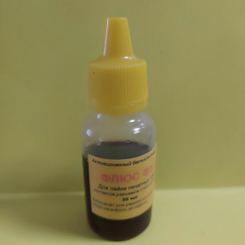 Паяльный активированный флюс Ф3 предназначен для обеспечения качественного лужения и пайки радиоэлементов, различных металлов в том числе высокоуглеродистых сталей, цинка, меди и никеля, а также их сплавов.