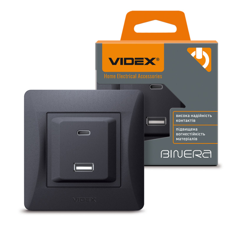 Розетка USB-A+USB-C PD20W черный графит VIDEX BINERA (VF-BNCHRUC20-BG)