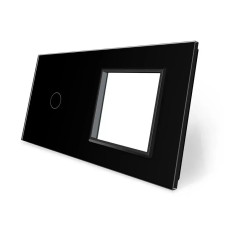 Рамка 2-постовая для 1-сенсорного выключателя и розетки (1-0) LIVOLO, закаленное стекло, черная, 151×80 м